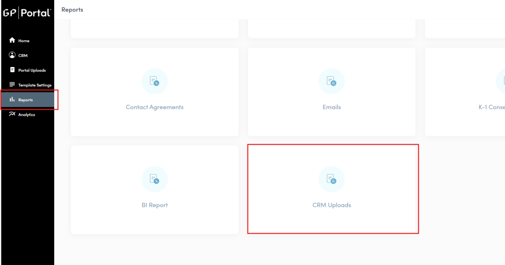 - Inside the Reports tab, navigate to the CRM Upload reports.